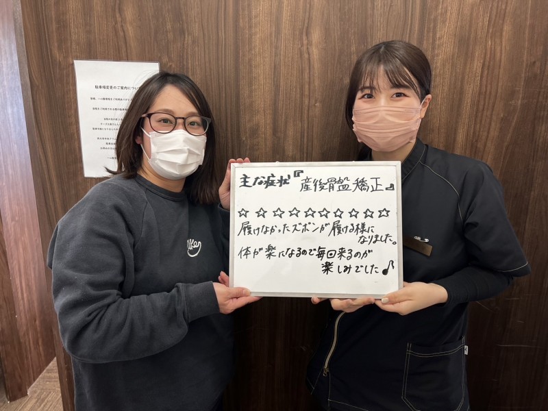 「産後骨盤矯正で首、肩の痛みがとれました♪」