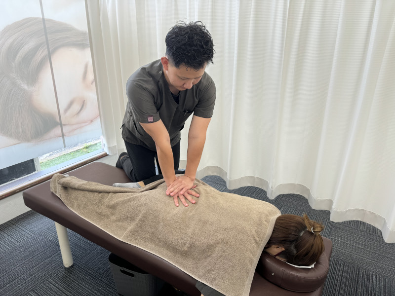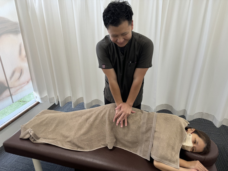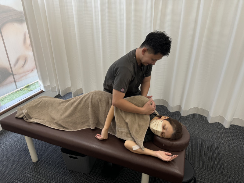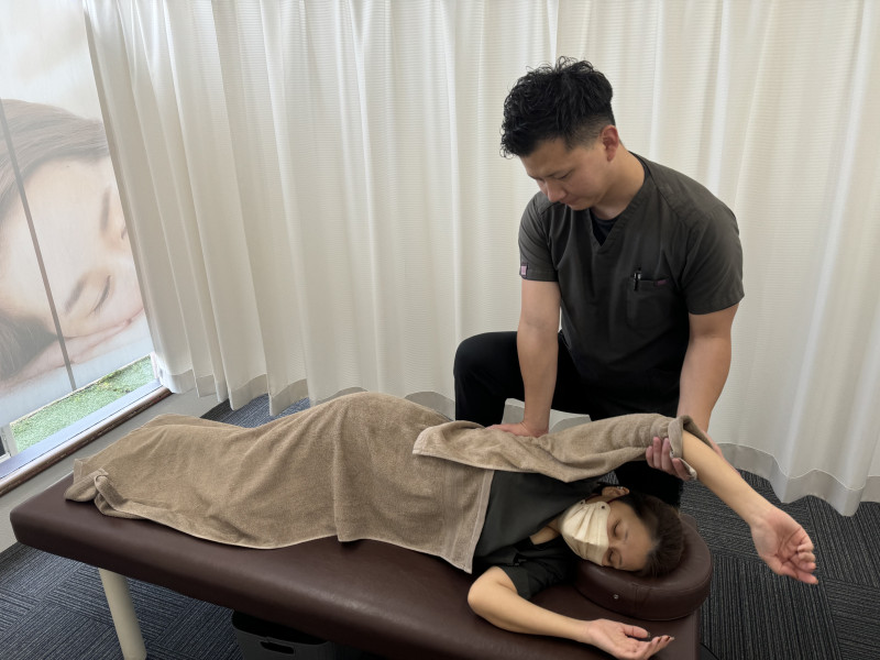 肩甲骨の調整や脇まわりのリンパの調整など行います。