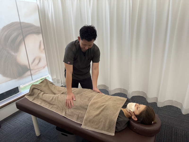 うつ伏せと横向きで行った矯正の具合を見たり、微調整を行います。